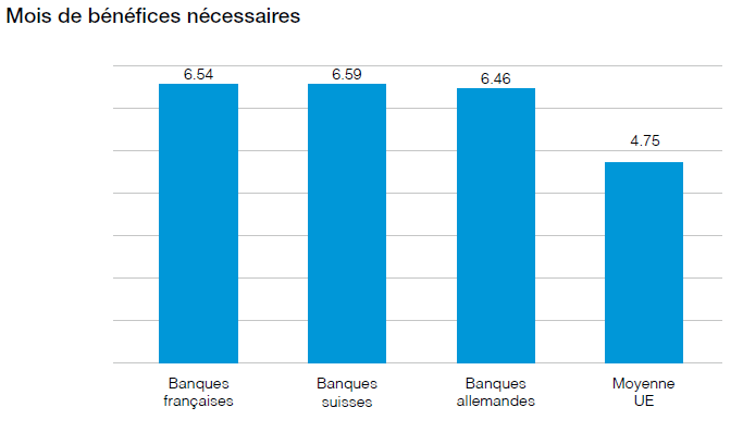 Le capital supplémentaire requis dans le cadre de la présente proposition est beaucoup plus faible et équivaut, pour les banques françaises, à accumuler six mois de bénéfices non distribués, même si, dans la pratique, les banques disposeraient de plus de temps pour y parvenir, car ce type de mesure est généralement mis en œuvre progressivement sur de plus longues périodes.