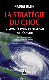 La théorie de la stratégie du choc a été présentée par Naomi Klein dans son livre – paru en 2007 – dont le titre complet est « La stratégie du choc : la montée d’un capitalisme du désastre ». Elle a prolongé sa présentation en 2009, au moment de la crise financière des subprimes, par un documentaire bâti autour d’images d’archives.